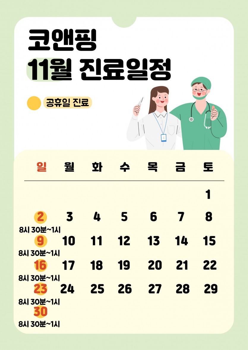 11월 진료 일정 안내해드려요!