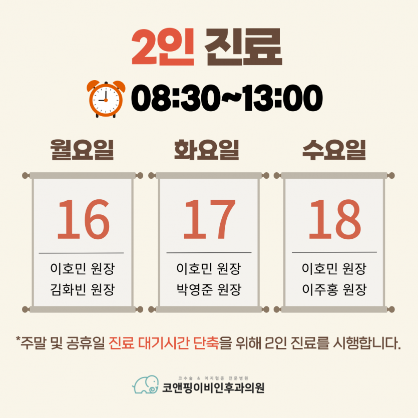 ★주말 및 공휴일 진료 대기시간 단축을 위해 2인 진료를 시행합니다★
