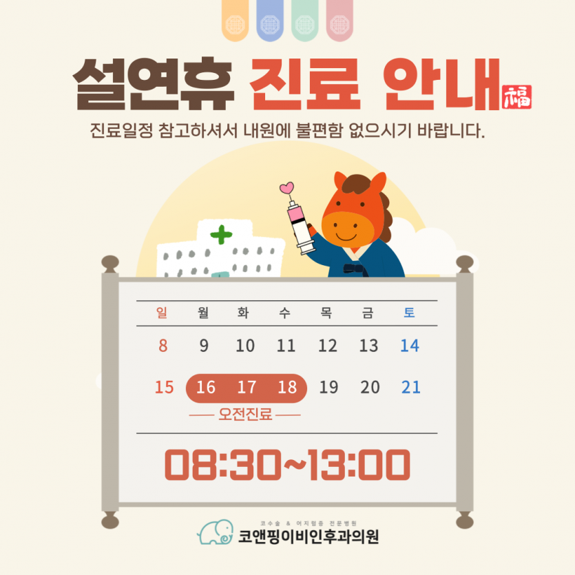 2월 16일~18일 설 연휴 진료 안내해드려요!