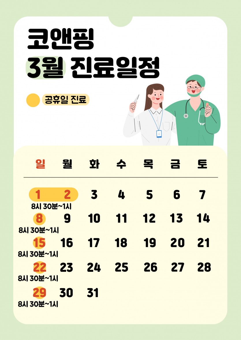 3월 진료 일정 안내해드려요!