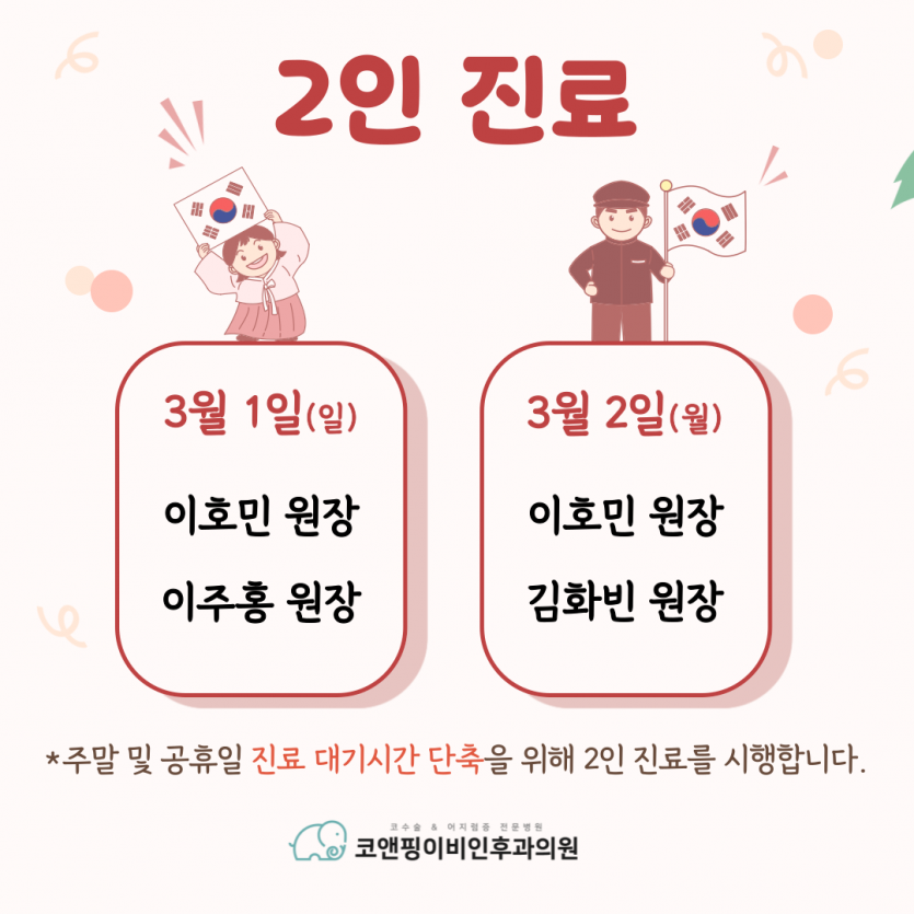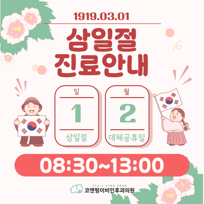 3월 1일 삼일절, 3월 2일 대체공휴일 진료 안내해드려요!