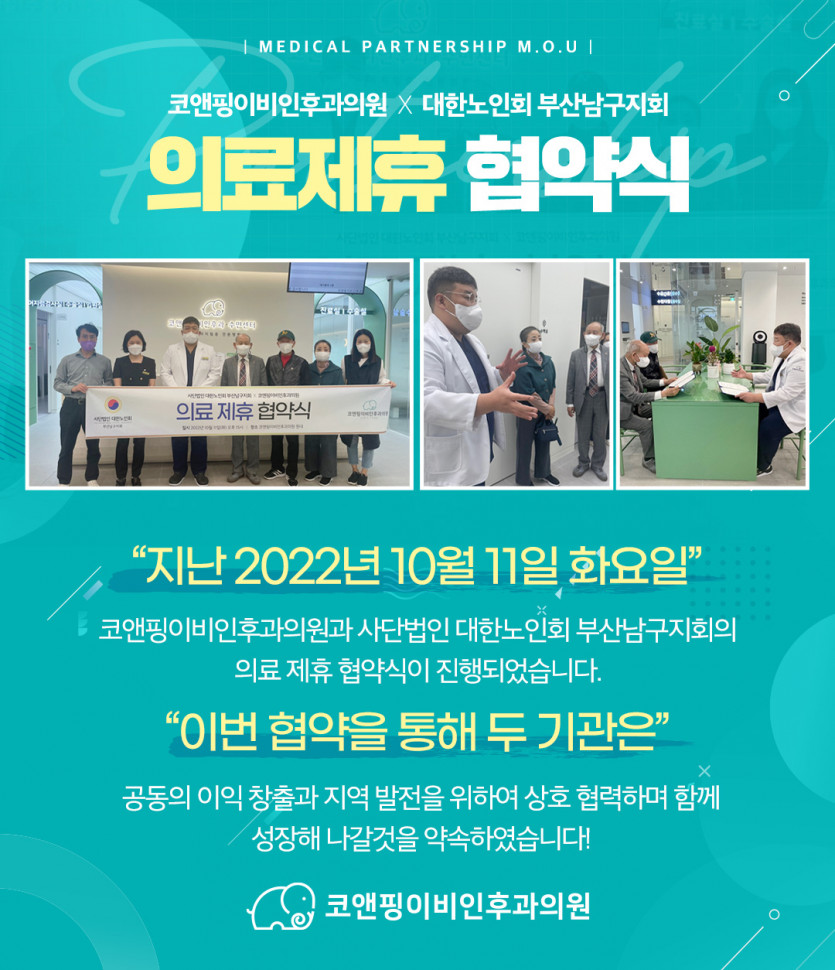 제목 : [MOU체결] 코앤핑이비인후과 X 대한노인회 부산남구지회