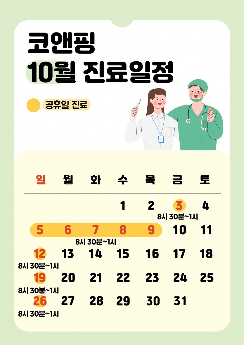 10월 진료 일정 안내해드려요!
