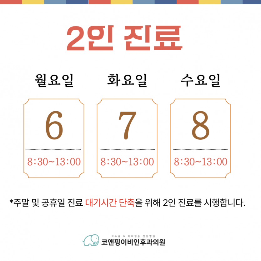 ★주말 및 공휴일 진료 대기시간 단축을 위해 2인 진료를 시행합니다.★