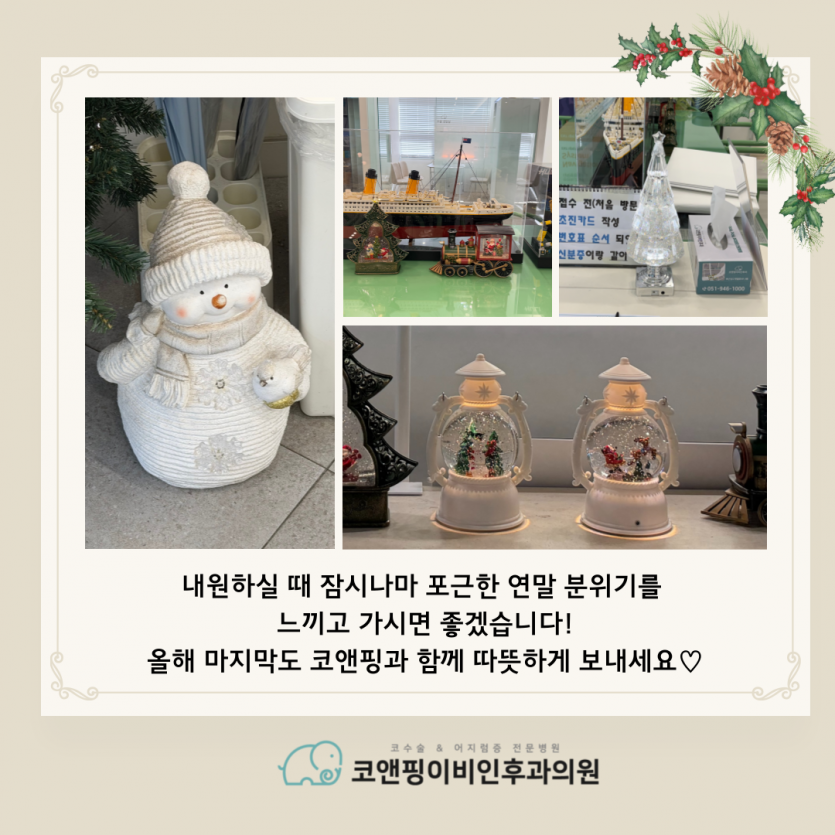 내원하실 때 잠시나마 포근한 연말 분위기를 느끼고 가시면 좋겠습니다!