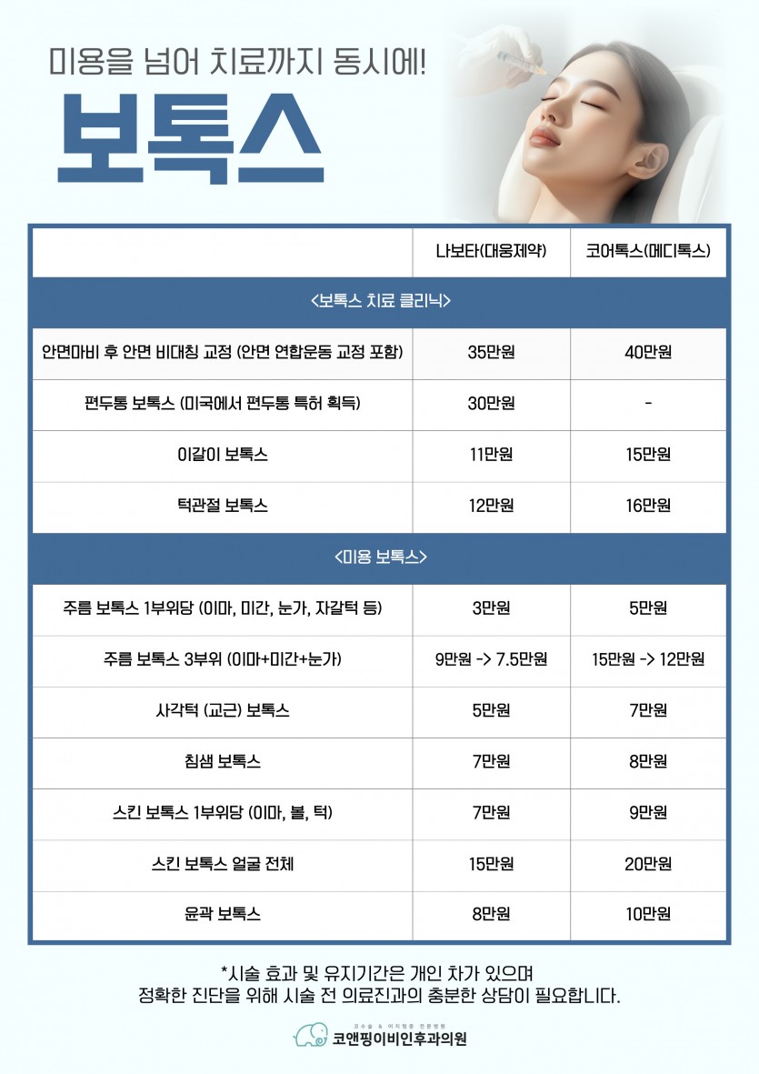 제목 : 보톡스 : 미용을 넘어 치료까지 동시에!
