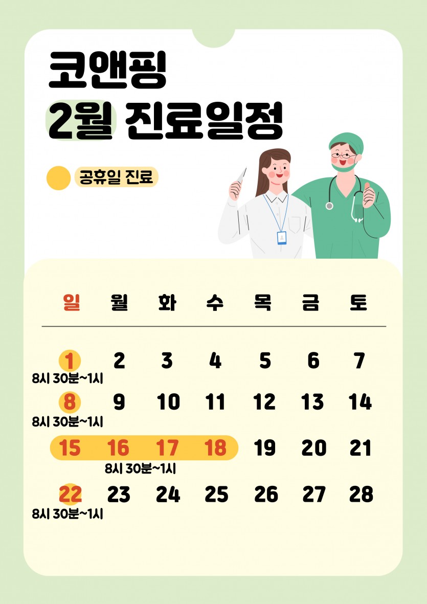 ★ 2월 16일,17일,18일 설날 연휴 8시 30분~1시까지 진료합니다★