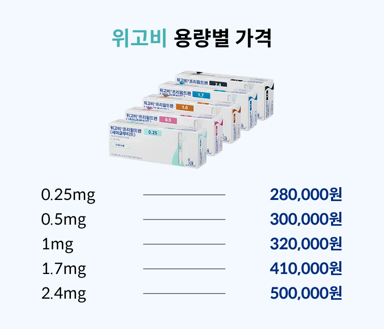 ※ 용량별 금액은 모두 4주 (4회 분량) 기준 금액입니다.